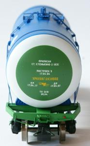 4-осная цистерна для бензина и светлых нефтепродуктов. Тип вагона 15-1443. Рама зеленая, бак синего цвета, на белых торцах темно-зеленые круги с надписями. Сверху 1 небольшой круглый люк, площадка, к которой ведут 2 лестницы. Поручни и лестницы металлические. Металлические полосы, охватывающие и удерживающие бак на раме, выполнены отдельно из металлической тонкой полосы. Надписи: «БалтТрансСервис», номер «51316008», «бензин», «нефть», «60т», «73,1м/куб.», «Приписан ст.Стенькино-2 Мск.ж.д.», «Построен 5 10.04.04», «КР 17.04.17», «ДР 17.04.07», «Уралвагонзавод», «тара 23,2т», «Срочный возврат ст. Новоярославская Сев.ж.д.», «закрой крышку сливного прибора огнеопасно» и некоторые другие. Колесные диски цельнометаллические с затемненным покрытием. Сцепки сменные с накидной петлей. Принадлежность: РЖД. Владелец: ООО «БалтТрансСервис». Номер вагона: 51316008. Приписан: ст. Стенькино - 2 Мск. Ж.Д. Длина 128 мм. Эпоха: V. Масштаб: НО(1:87). Производитель: Онега (Латвия)