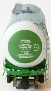 4-х-осная цистерна для саломаса. Тип вагона 15-1447. Рама зеленая, бак серого цвета, на белых торцах темно-зеленые круги с надписями. Сверху 1 небольшой круглый люк, площадка, к которой ведут 2 лестницы. Поручни и лестницы металлические. Металлические полосы, охватывающие и удерживающие бак на раме, выполнены отдельно из металлической тонкой полосы. Надписи: «РЖД», «ТрансКом», номер «50673375», «саломас, «68т», «Собственник ЗАО «Транском», «Приписан ст.Раевка КБШ», «Срочный возврат ст.Новопролетарская МСК», «Построен 143 01.92», «ДР 88316.04.06-08», «ТО-654909 04.06», «тара 24,9т», «закрой крышку сливного прибора огнеопасно» и некоторые другие. Колесные диски цельнометаллические с затемненным покрытием. Сцепки сменные с накидной петлей. Артикул: 1447-0003. Принадлежность: РЖД. Номер вагона: 50673375. Приписан: ст. Раевка Кбш. Ж.Д. Эпоха: V. Длина: 128 мм. Масштаб: НО(1:87). Производитель: Онега (Латвия)